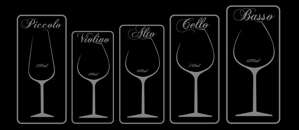 Introducing Corpo Sonoro, which means “body of resonance or sound” in Italian. It comprises five distinct glasses designed to enhance your wine experience. These glasses are: